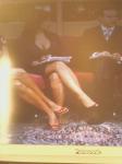 From Mexican TV morning show called "Hoy". Wome with 1 shoe off bare foot on floor.